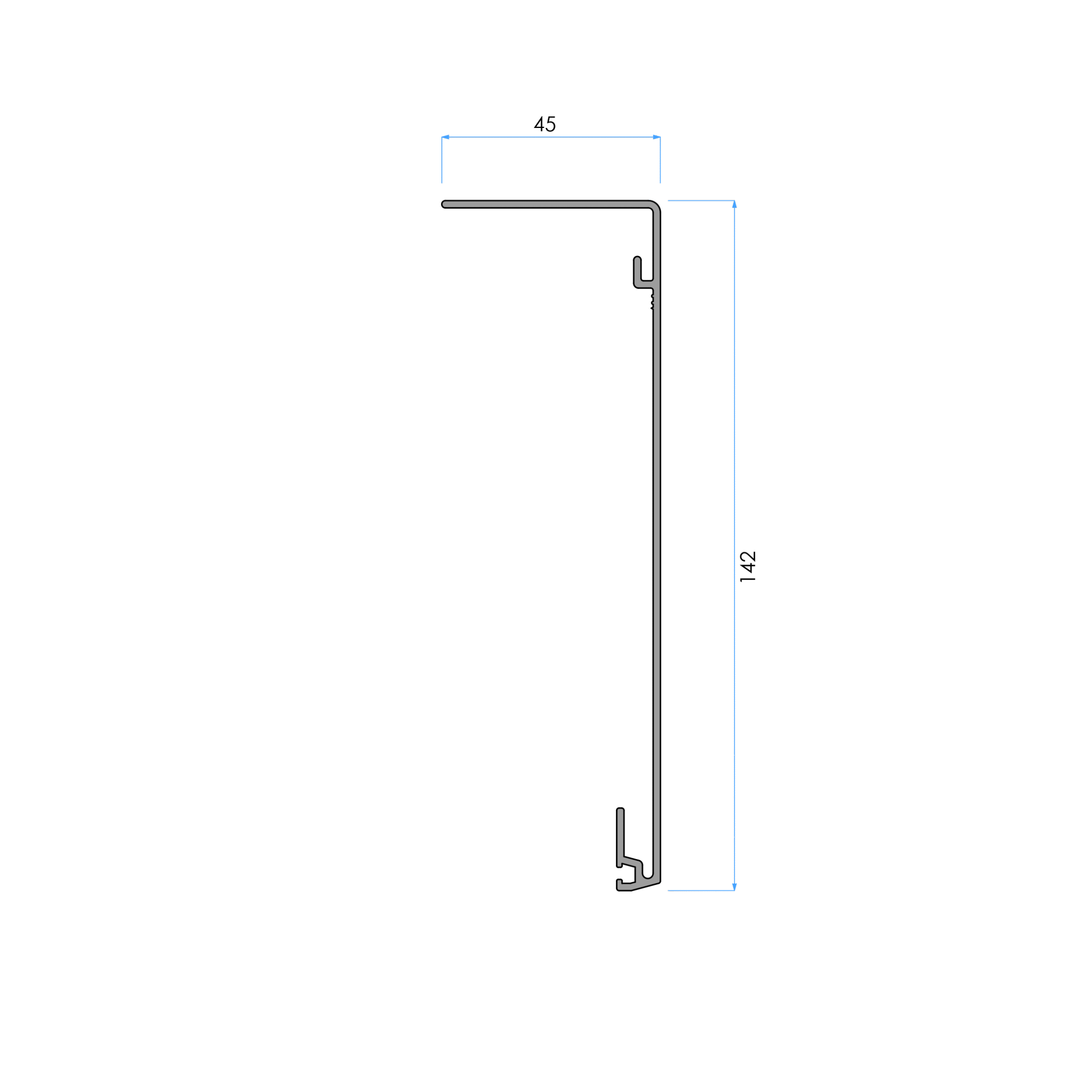 Profil ve dekoratif kaplama 4 metre uzunluğundadır. Sistem, 8.2.8 mm kalınlığında cam panelleri destekler. Lamine ve temperli cam kullanımı tavsiye edilir.